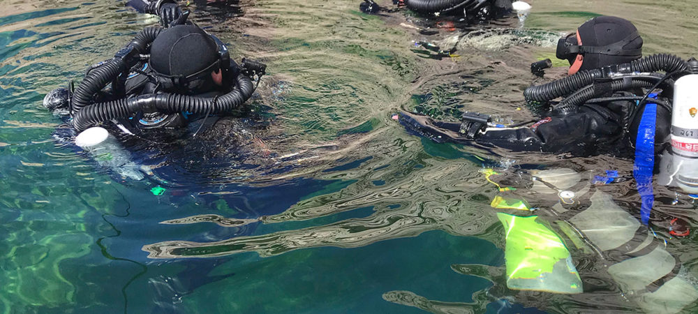 - Two lift bags / delayed surface marker buoys (DSMB’s) with adequate lift and size for the dive environment