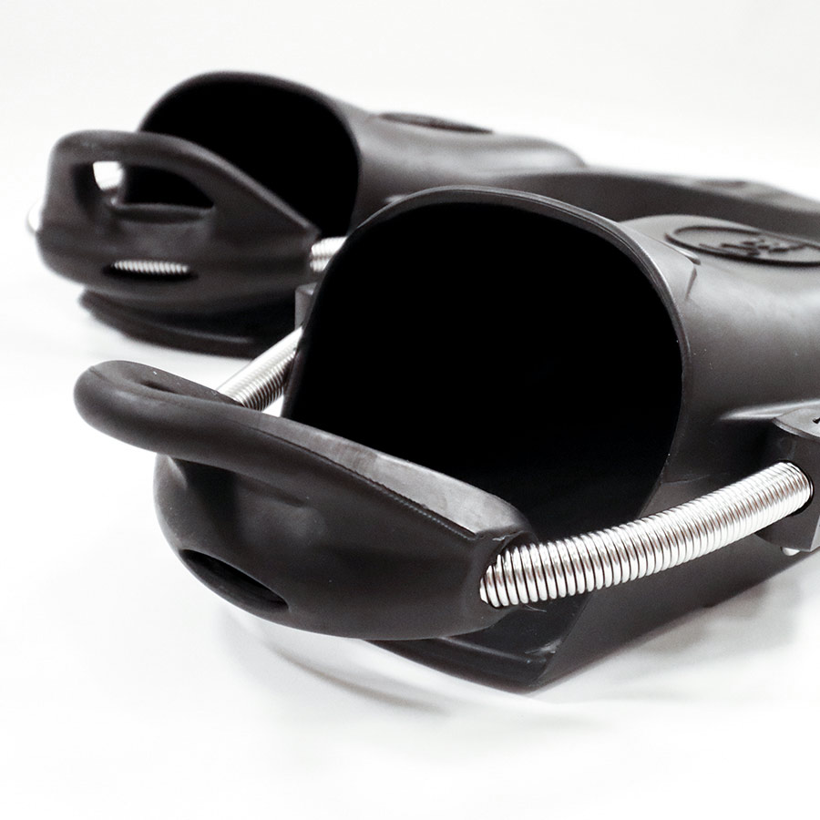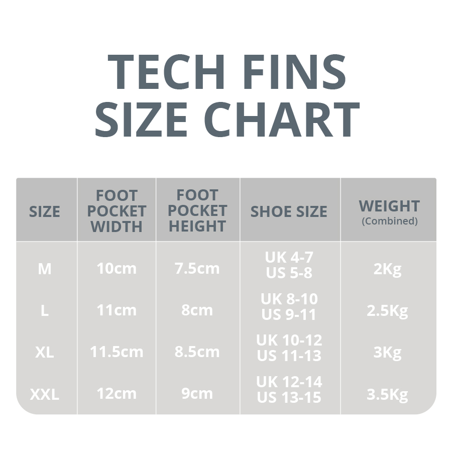 The Fourth Element Tech Fins were developed with technical divers in mind with a slightly negative buoyancy characteristic but is suitable for all levels of diver looking for a high-performance rubber fin. The wider blade gives maneuverability without compromising the power which is there when needed, while the shorter length improves agility and makes stowing the fins for transport more convenient. Spring straps with comfortable heel pads keep the feet securely held in place and these spring straps can be removed and changed easily with everyday tools if required.