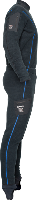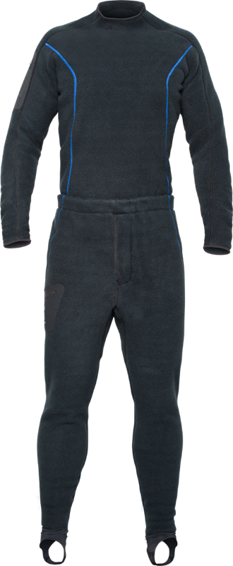 - High 4-way stretch fleece means garment is form-fitting and reduces bulk and lead weight requirements compared to non-stretch fleece undergarments