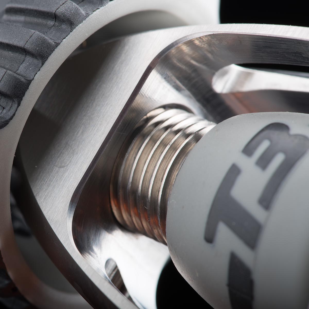 - Soft overmolded Rapid Adjustment Knob for manual detuning in special situations such as surf entries or octo use.