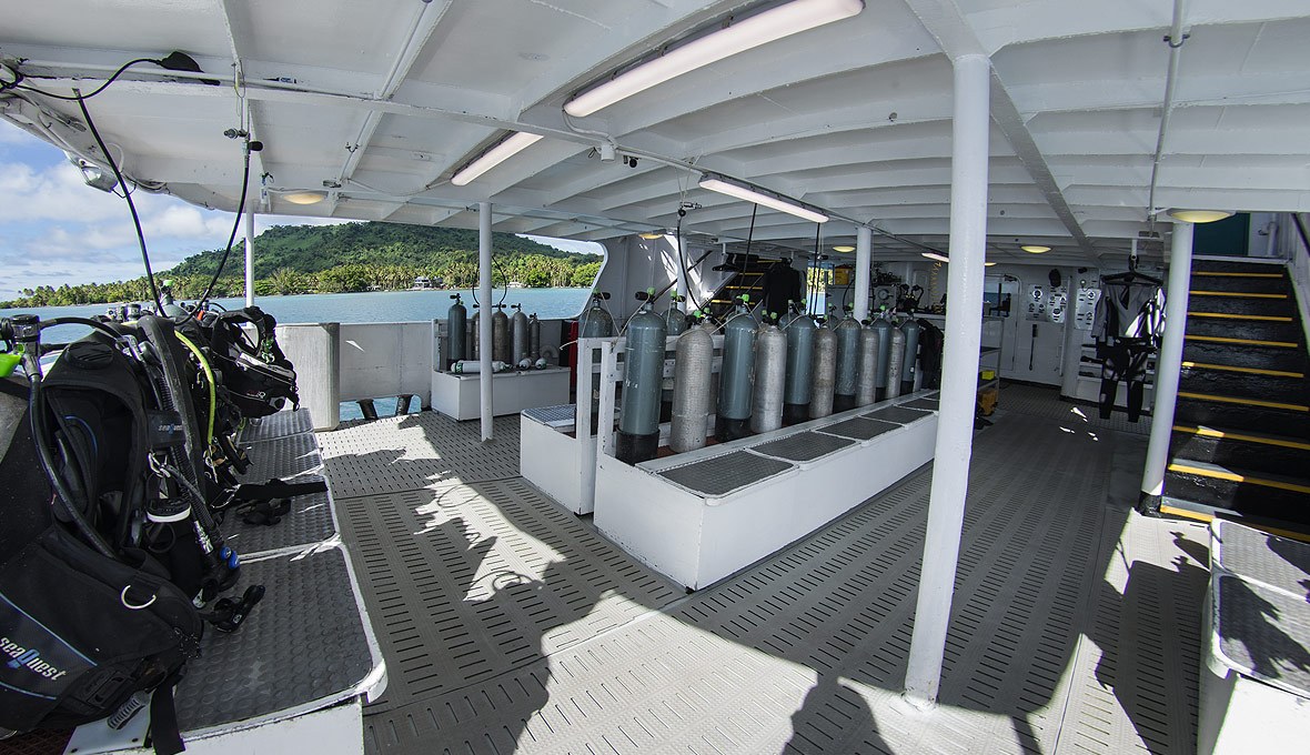 The Odyssey Liveaboard is designed with comfort in mind, offering spacious, air-conditioned staterooms. Guests can relax in the inviting lounge, enjoy freshly prepared meals in the dining area, or unwind on the sun deck between dives. With plenty of space to gear up and easy access to the dive deck, the Odyssey provides the perfect balance of relaxation and adventure throughout your Truk Lagoon experience.
