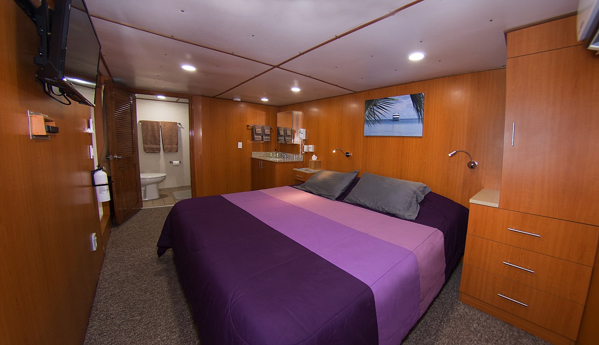 The day aboard Odyssey begins after a 7:00 a.m. hot breakfast with your first dive briefing around 7:45. You will be able to do two dives before lunch. During lunch we usually move to a new site. After lunch you have the option to either do another dive, or relax on the either of the sundecks or in the privacy of your own stateroom. A late afternoon dive is also offered. Around 6:30 p.m. a sumptuous dinner will be waiting for you. After dinner you may choose to do a night dive. At night guests usually gather in the entertainment lounge to enjoy a movie, or review what was captured that day in video.